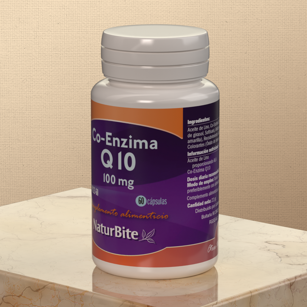Co-Enzima Q10, Aglomerante (Maltodextrina), Antiaglomerante (Estearato de Magnesio), Recubrimiento (Gelatina), Colorante (Óxido de hierro rojo).